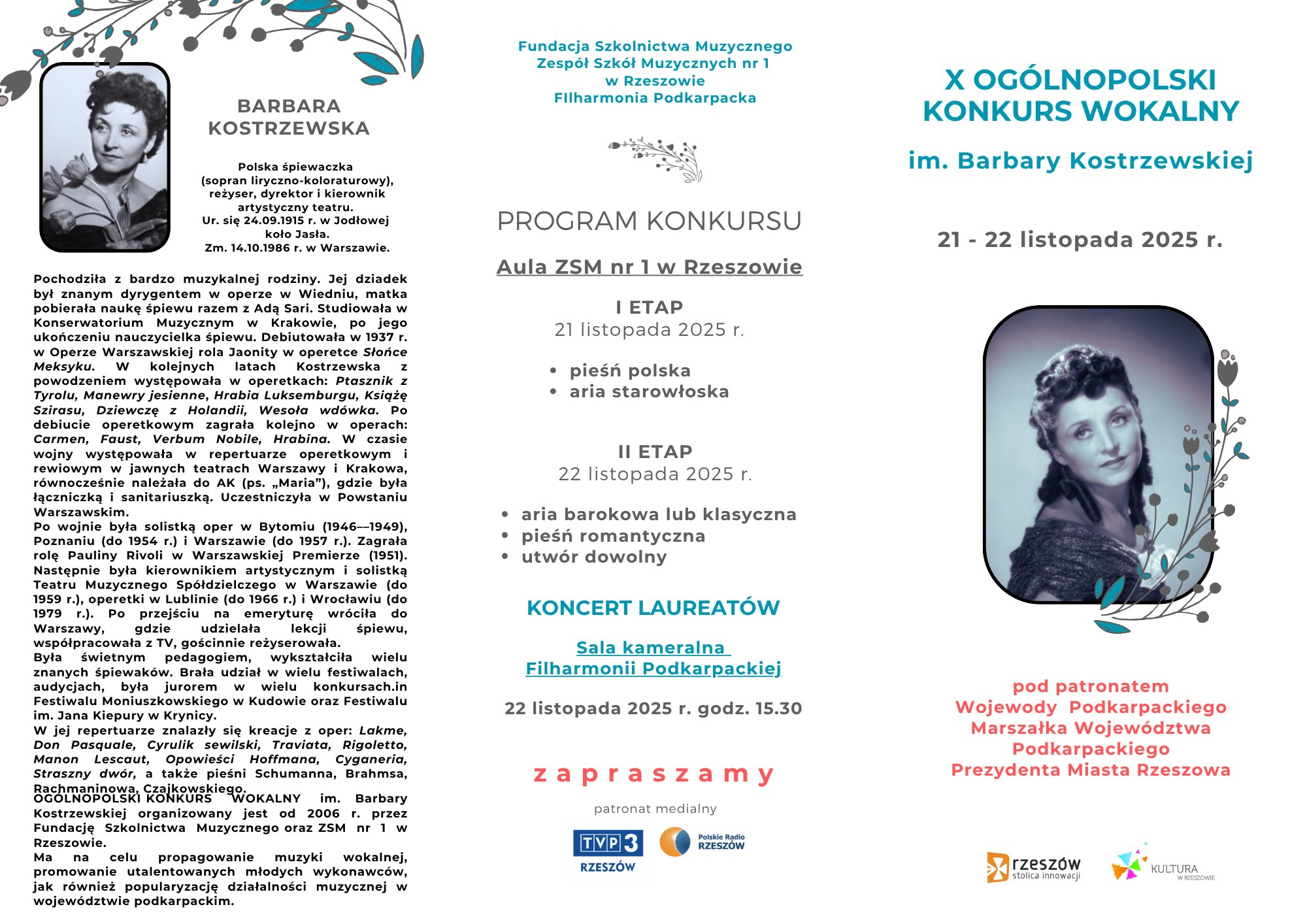Zapraszamy do zapoznania się z materiałami na temat X Jubileuszowego Konkursu Wokalnego im. Barbary Kostrzewskiej w Rzeszowie.
