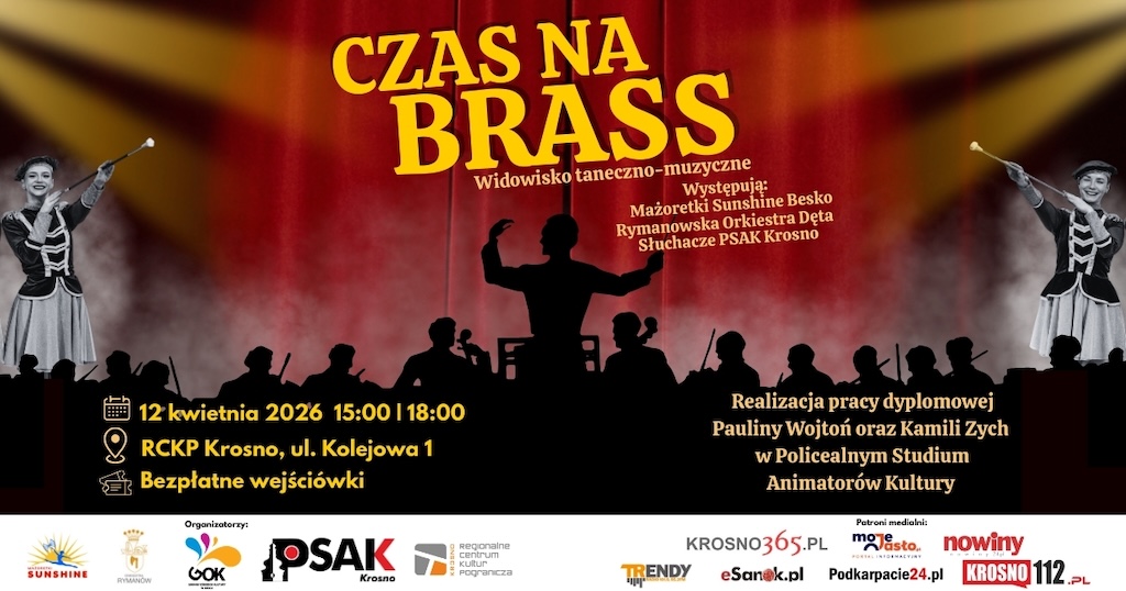 Policealne Studium Animatorów Kultury w Krośnie oraz Gminny Ośrodek Kultury w Besku zaprasza na widowisko taneczno-muzyczne „Czas na brass”.